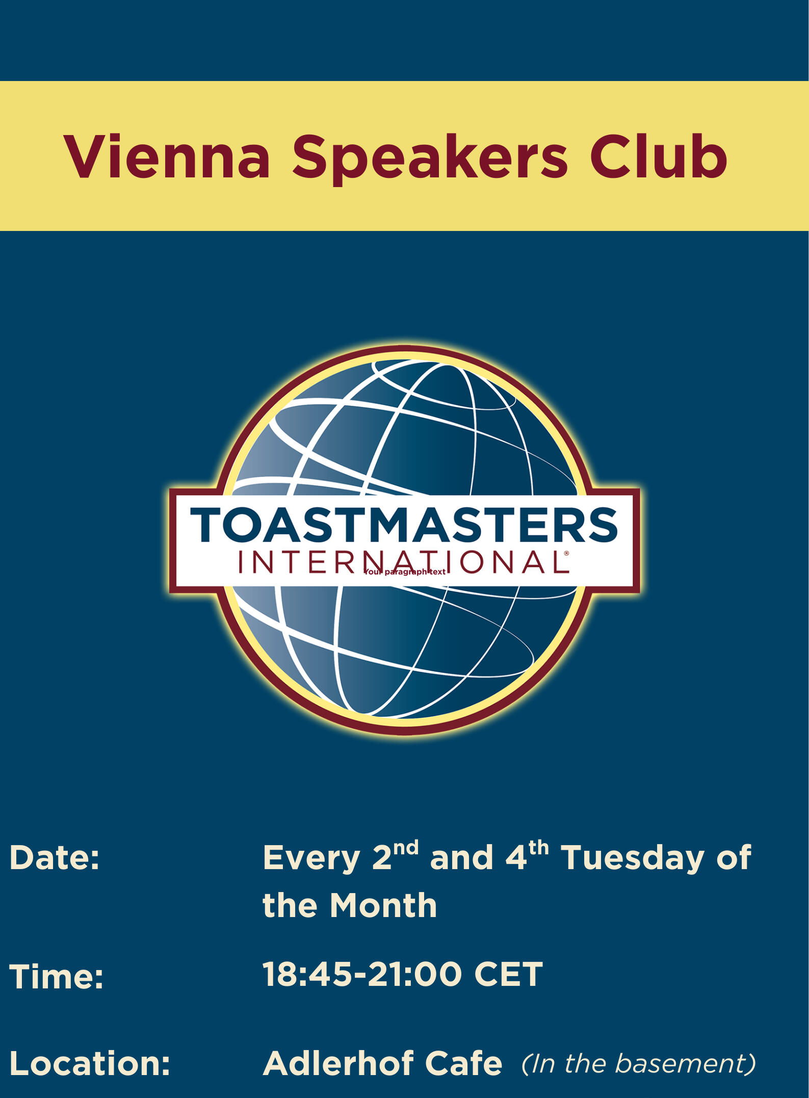 The Vienna Speakers Club is part of the Toastmasters International network, a world leader in communication and leadership development.